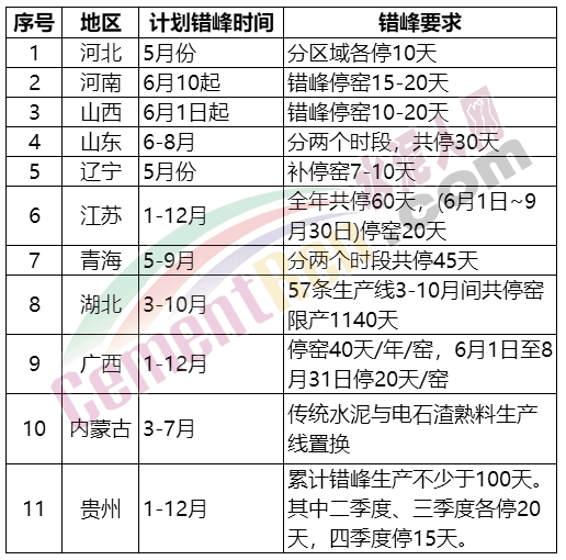 多省水泥企業(yè)停產(chǎn)時(shí)間發(fā)布