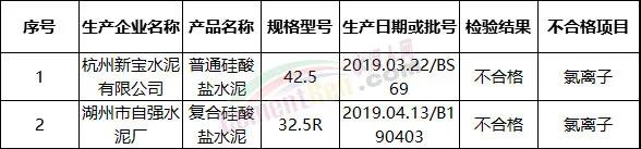 浙江省浙江省市場(chǎng)監(jiān)管局2019年硅酸鹽水泥產(chǎn)品監(jiān)督抽查結(jié)果顯示10個(gè)地區(qū)的49個(gè)批次產(chǎn)品中不合格2批次,不合格項(xiàng)目為氯離子。