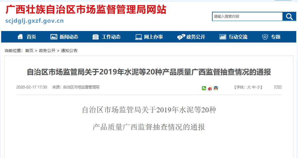 廣西市場(chǎng)監(jiān)管局官網(wǎng)通報(bào)2019年水泥等20種產(chǎn)品質(zhì)量廣西監(jiān)督抽查情況稱:2019年共抽查90家企業(yè)的166批次水泥產(chǎn)品,其中生產(chǎn)領(lǐng)域抽查159批次,流通領(lǐng)域抽查7批次。不合格產(chǎn)品2批次,不合格發(fā)現(xiàn)率為1.2%。其中生產(chǎn)領(lǐng)域抽查合格157批次,不合格產(chǎn)品2批次,不合格發(fā)現(xiàn)率為1.26%;抽查不合格項(xiàng)目為燒失量。
