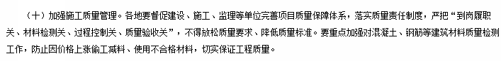 今年3月5日,住房和城鄉(xiāng)建設(shè)部發(fā)布了《關(guān)于加強(qiáng)新冠肺炎疫情防控期間房屋市政工程開(kāi)復(fù)工質(zhì)量安全工作的通知》要求重點(diǎn)加強(qiáng)對(duì)水泥、混凝土、鋼筋等建筑材料質(zhì)量檢測(cè)工作,防止因價(jià)格上漲偷工減料、使用不合格材料,切實(shí)保證工程質(zhì)量。