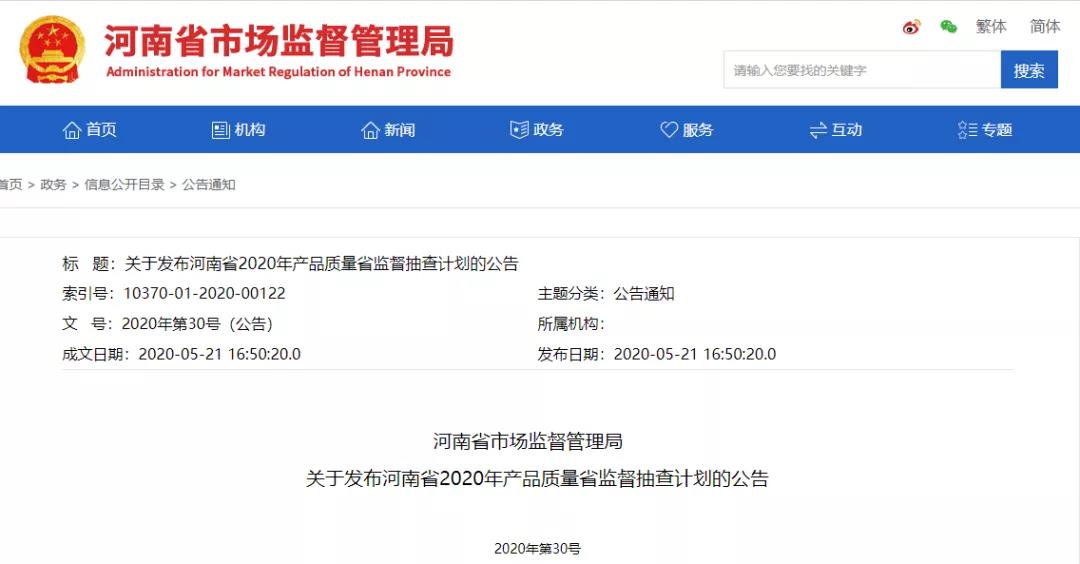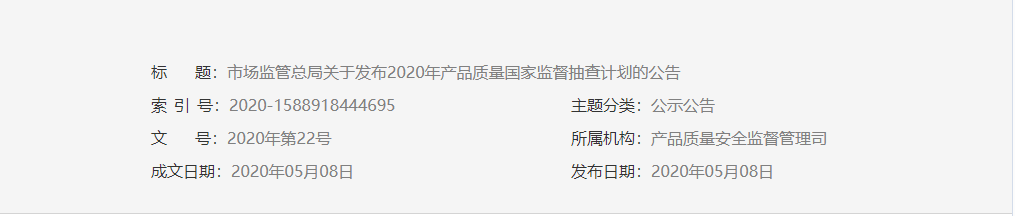 與此同時(shí),湖北、陜西、河南等多個(gè)省市地區(qū)陸續(xù)下發(fā)了2020年產(chǎn)品質(zhì)量國(guó)家監(jiān)督抽查計(jì)劃及細(xì)則。