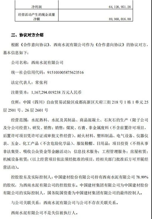 公告特別提示稱(chēng):四川雙馬水泥股份有限公司已于 2020 年 5月 29 日與西南水泥有限公司簽署了《合作意向協(xié)議》。公司擬轉(zhuǎn)讓所持有的遵義礪鋒水泥有限公司100%股權(quán) 。