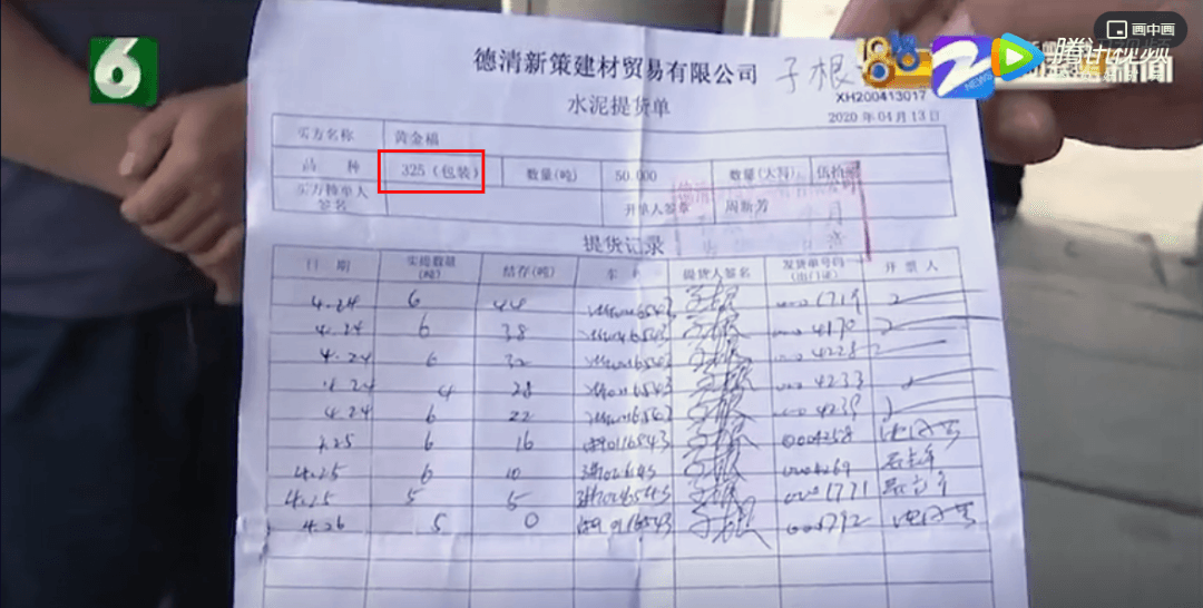 提貨單顯示的銷售企業(yè)為新策建材貿(mào)易有限公司,其公司辦公室林主任表示,水泥等建材是供應(yīng)工地的,水泥都是散裝車大罐出去的沒有零賣的。但水泥提貨單顯示32.5包裝水泥,提貨單抬頭正是這家企業(yè)。