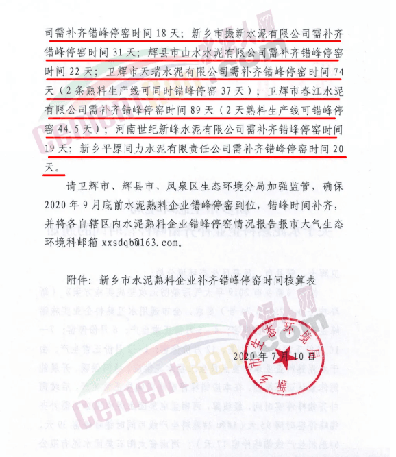 3、新鄉(xiāng)市振新水泥有限公司需補齊錯峰停窯時間31天;