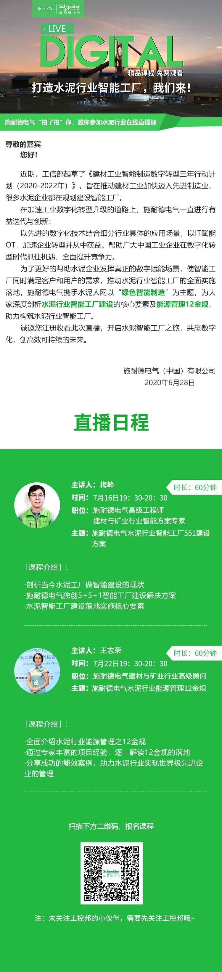 為此,水泥人網(wǎng)特意邀請(qǐng)施耐德電氣兩位資深水泥行業(yè)專家,為行業(yè)企業(yè)奉上兩堂智能化盛宴,既有超前獨(dú)到的理論見解,又有豐富生動(dòng)的案例實(shí)踐,助力所有關(guān)心智能工廠建設(shè)的企業(yè),做到“心中有數(shù)”!