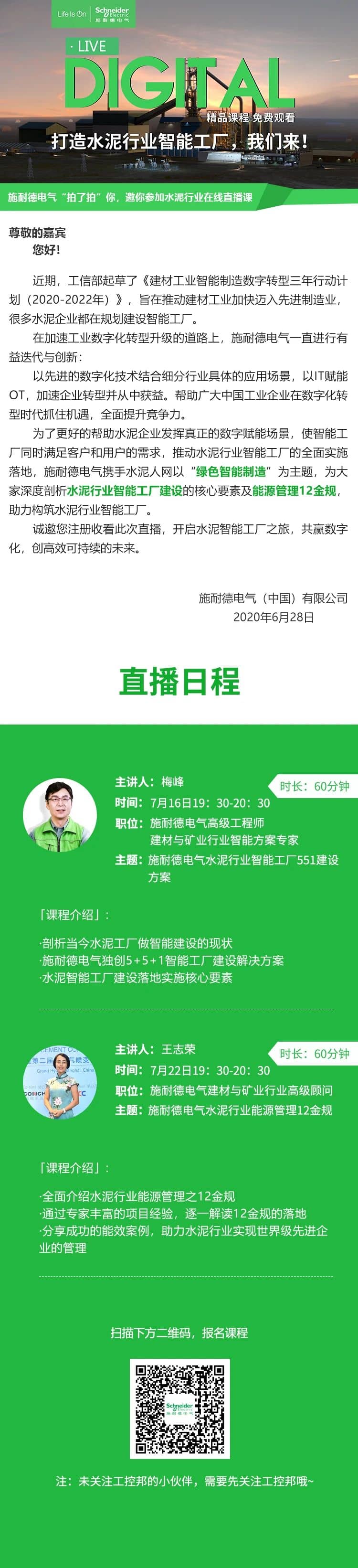 今日(7月16日)19:30~20:30,水泥人網(wǎng)將攜手施耐德電氣兩位資深水泥行業(yè)專家,為行業(yè)企業(yè)奉上兩堂智能化盛宴,既有超前獨(dú)到的理論見(jiàn)解,又有豐富生動(dòng)的案例實(shí)踐,助力所有關(guān)心智能工廠建設(shè)的企業(yè),做到“心中有數(shù)”!