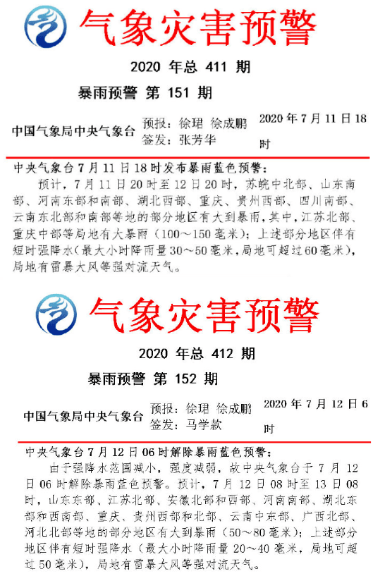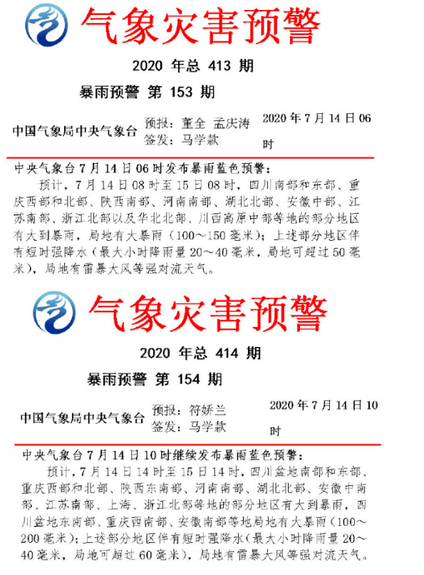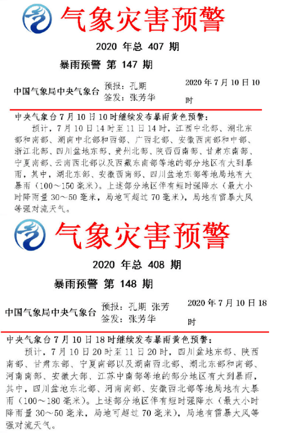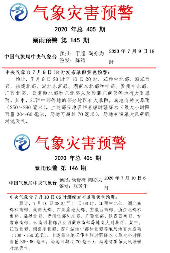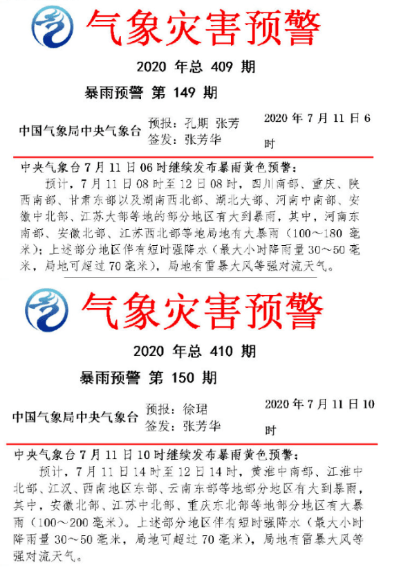 中央氣象臺(tái)從7月9日至15日上午連續(xù)發(fā)布12期暴雨預(yù)警: