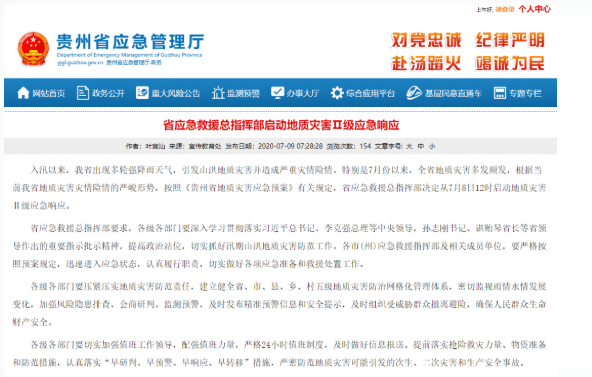貴州省應(yīng)急管理廳啟動(dòng)地質(zhì)災(zāi)害II級(jí)應(yīng)急響應(yīng),要求各市(州)應(yīng)急救援指揮部及相關(guān)成員單位,要嚴(yán)格按照預(yù)案規(guī)定,迅速進(jìn)入應(yīng)急狀態(tài)。