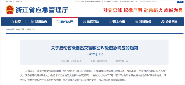 浙江省應(yīng)急管理廳啟動(dòng)自然災(zāi)害救助IV級(jí)響應(yīng)通知,要求各有關(guān)單位采取有力措施,全力保障人民群眾生命財(cái)產(chǎn)安全。