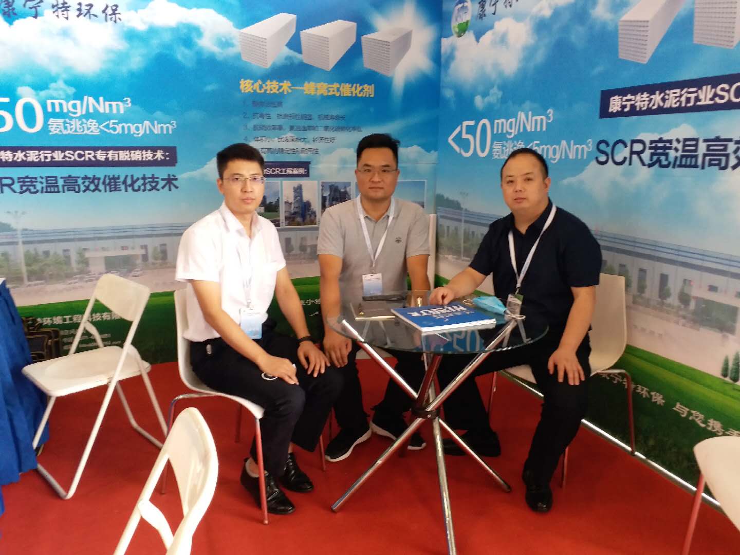 康寧特環(huán)保執(zhí)行總裁陳江濤(中)、市場部部長趙涇宇(左)與水泥人網市場總監(jiān)劉敬(右)合影