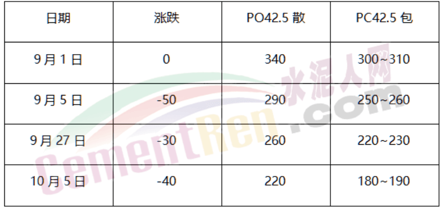 水泥價(jià)格直線下跌,最低價(jià)180~190元/噸