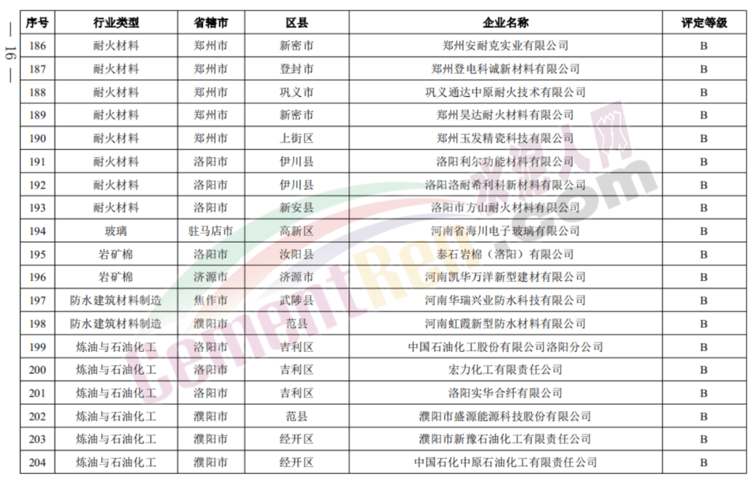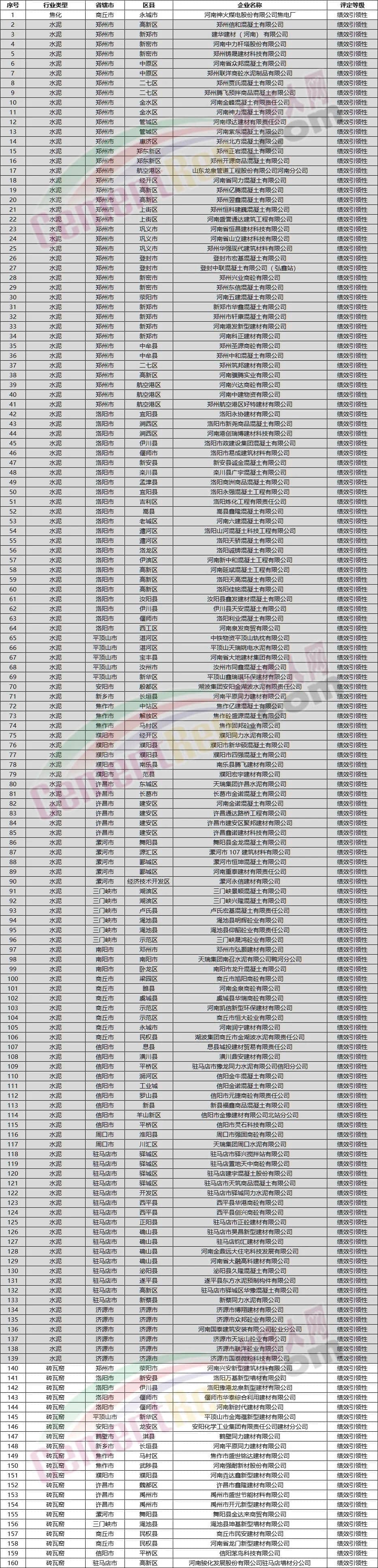 包括登封中聯(lián)、新安中聯(lián)、洛陽(yáng)中聯(lián)、濟(jì)源中聯(lián)、鄧州中聯(lián)、淅川中聯(lián)、南陽(yáng)中聯(lián)、安陽(yáng)中聯(lián)、安陽(yáng)湖波、大地水泥等20家企業(yè)獲評(píng)B級(jí)。