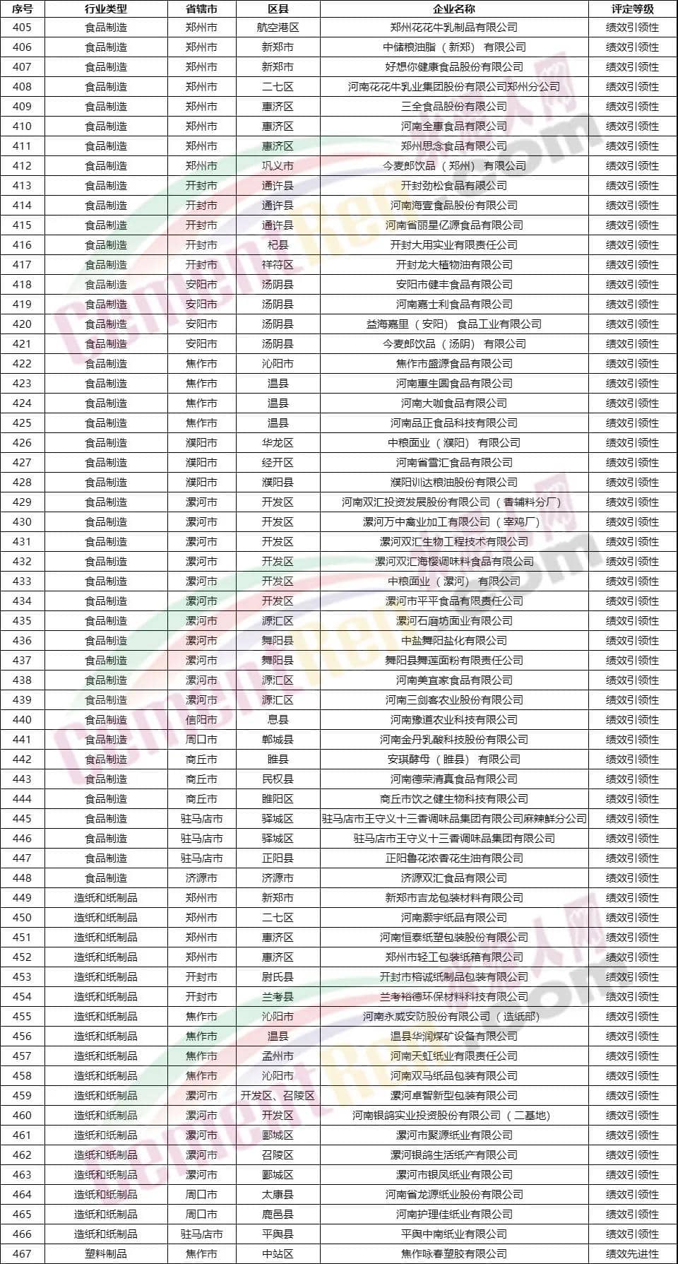 績(jī)效評(píng)級(jí)績(jī)效引領(lǐng)性企業(yè)名單