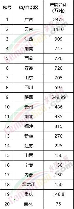 在75條熟料生產線1.1億噸產能中,廣西區(qū)域2475萬噸/年,云南1110萬噸/年,江西909萬噸/年,湖南747萬噸/年、西藏720萬噸/年,詳情如下: