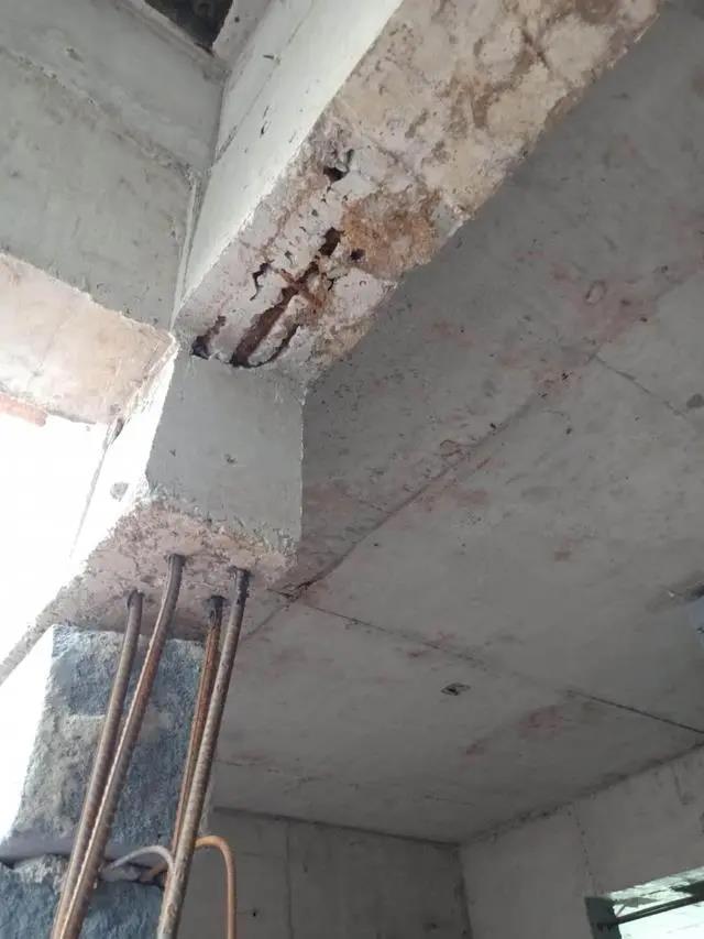 另外,步行樓梯的混凝土框架上半部分也能看出明顯的位移,扭曲,變形。