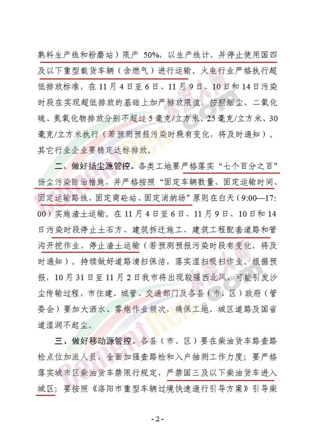 嚴(yán)格落實企業(yè)管控要求,水泥熟料、碳素、玻璃制品和陶瓷企業(yè)限產(chǎn)50%(含)以上(以生產(chǎn)線計,兩條生產(chǎn)線的停產(chǎn)一條,單條生產(chǎn)線的停產(chǎn));水泥粉磨站及水泥制品、石灰窯、礦粉、鈣粉、商砕和瀝青攪拌站等所有建材行業(yè)全部停產(chǎn)(績效引領(lǐng)性企業(yè)除外);所有企業(yè)停止使用國四及以下重型載貨車輛(含燃?xì)?進(jìn)行運(yùn)輸。通知原文如下: