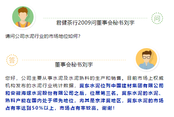 1.產(chǎn)能、產(chǎn)品和區(qū)位優(yōu)勢:通過40多年的發(fā)展,公司形成涵蓋水泥產(chǎn)業(yè)鏈延伸并多個(gè)產(chǎn)業(yè)領(lǐng)域,是北方最大的水泥生產(chǎn)企業(yè),熟料生產(chǎn)線全部采用新型干法技術(shù),熟料產(chǎn)能達(dá)到1.17億噸、水泥產(chǎn)能達(dá)到1.7億噸,水泥生產(chǎn)線布局和銷售網(wǎng)絡(luò)覆蓋13個(gè)省、自治區(qū)、直轄市,在所布局的區(qū)域形成了規(guī)模上的比較優(yōu)勢并擁有接續(xù)保供大工程、大客戶的能力,比單體企業(yè)具有規(guī)模優(yōu)勢,尤其在京津冀地區(qū),市場占有率超過50%,市場占有率、市場話語權(quán)進(jìn)一步增強(qiáng)。