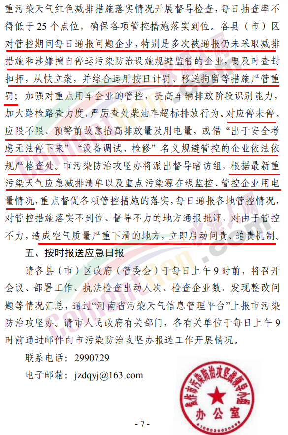 加強對重點用車企業(yè)的管控,提高車輛排放階段識別能力, 加大路檢路查力度,嚴(yán)厲查處柴油車超標(biāo)排放行為。對應(yīng)停未停、 應(yīng)限不限、預(yù)警前故意抬高排放量及用電量,或借“出于安全考慮無法停下來”“設(shè)備調(diào)試、檢修”名義規(guī)避管控的企業(yè)依法依規(guī)嚴(yán)格查處。市污染防治攻堅辦將派出督導(dǎo)暗訪組,根據(jù)最新重污染天氣應(yīng)急減排清單以及重點污染源在線監(jiān)控、管控企業(yè)用電量情況,重點督促各項管控措施的落實,每日通報各地管控情況,對管控措施落實不到位、督導(dǎo)不力的地方通報批評,對由于管控不力,造成空氣質(zhì)量嚴(yán)重下滑的地方,立即啟動問責(zé)、追責(zé)機制。