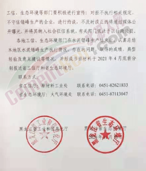 黑龍江省工信廳、生態(tài)環(huán)境廳將對相關(guān)水泥熟料生產(chǎn)企業(yè)錯峰生產(chǎn)執(zhí)行情況開展不定期督察,如果發(fā)現(xiàn)不按照規(guī)定停窯的企業(yè),將根據(jù)國家及黑龍江省有關(guān)規(guī)定嚴(yán)肅處理。