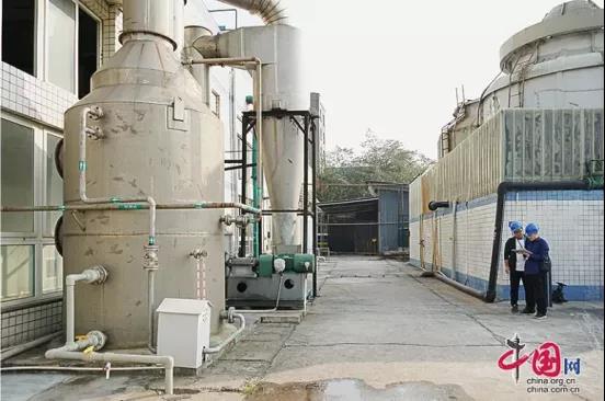 四川自貢市生態(tài)環(huán)境局執(zhí)法人員檢查企業(yè)濕法除塵設備