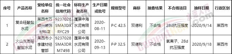 對于不合格產品,青島市市場監(jiān)管部門已依法進行后處理工作。監(jiān)督抽查合格產品列表(水泥)