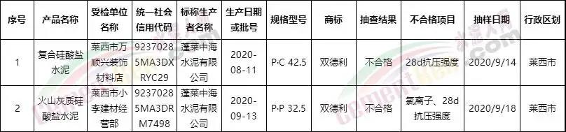 11月19日青島市市場監(jiān)管局發(fā)布2020年水泥抽檢報告,結果顯示,水泥監(jiān)督抽查不合格產(chǎn)品檢出率為3.3%,不合格原因為氯離子、28d強度等。