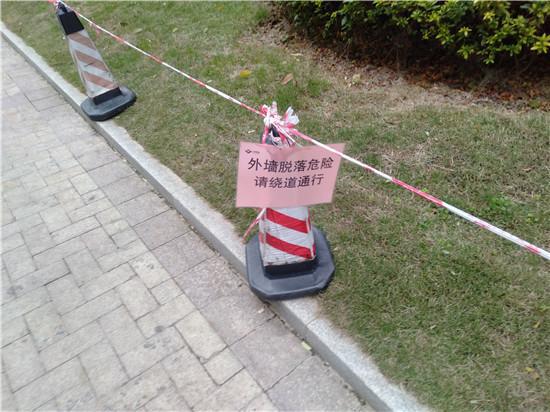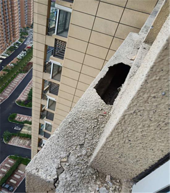 “前天(20日)大塊掉下來,昨天又有小塊掉下來。”業(yè)主陳先生告訴記者,從8月底開始,樓棟隔三差五就掉水泥片。回憶起第一次掉的情形,他現(xiàn)在都有點(diǎn)后怕。