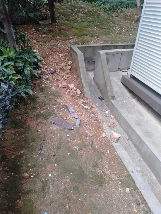 陳先生回憶,當(dāng)時水泥片從32層脫落,下面是人行道,一個人坐在石凳上,一個母親抱著小孩路過。水泥片在空中跌落被他發(fā)現(xiàn)。“我趕緊喊,‘快跑快跑’。話音沒落,‘啪’一下已經(jīng)砸在地上。”母子和路人都沒受傷:“有一塊砸在那女的面前,她要是往前走一步,沒法想象。”“另一塊砸到草地里,插進(jìn)去一個好深的坑。”“后面有一次我們小區(qū)一個小朋友玩滑板,掉下來的小石頭把他腳上打了一個大包。”陳先生說。
