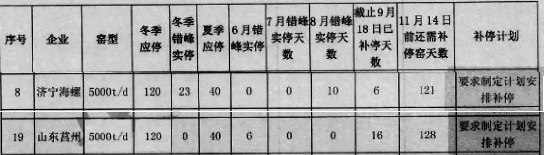 按照此前協(xié)會(huì)發(fā)文,要求在11月14日前補(bǔ)停2019~2020年期間未夠的天數(shù),A類企業(yè)濟(jì)寧海螺需停產(chǎn)超過(guò)100天。近期發(fā)布的文件又要求企業(yè)于12月1日前補(bǔ)停夠160天,這幾乎是不可能完成的任務(wù)。
