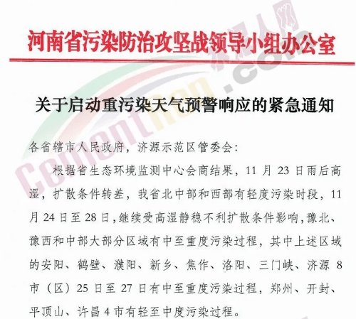 一、河南轄區(qū)12市于22日中午12時(shí)開(kāi)始啟動(dòng)重污染天氣橙色預(yù)警及Ⅱ級(jí)響應(yīng):河南省污染防治攻堅(jiān)戰(zhàn)領(lǐng)導(dǎo)小組辦公室通知安陽(yáng)、鶴壁、濮陽(yáng)、新鄉(xiāng)、焦作、濟(jì)源、洛陽(yáng)、三門峽、鄭州、開(kāi)封、平頂山、許昌等12市(區(qū))于22日中午12時(shí)開(kāi)始啟動(dòng)重污染天氣橙色預(yù)警及Ⅱ級(jí)響應(yīng)。