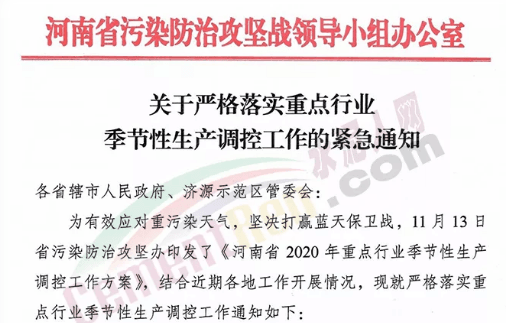 四、再次發(fā)文強(qiáng)調(diào)執(zhí)行季節(jié)性生產(chǎn)調(diào)控11月20日該保的保該停的停。