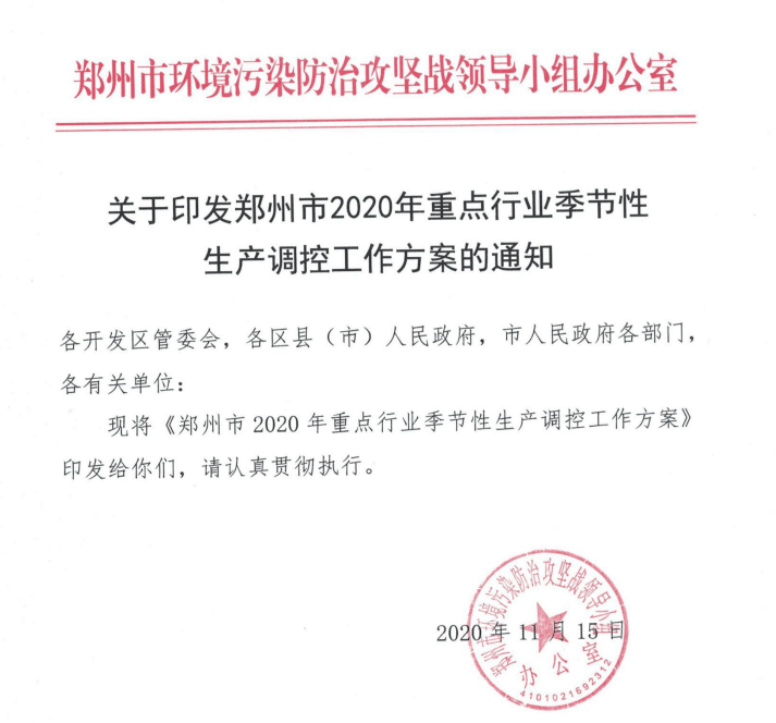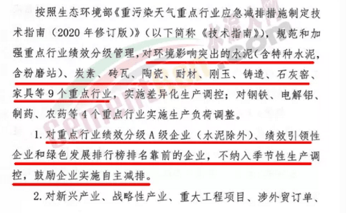 三、鄭州市發(fā)文要求從11月15日開(kāi)始執(zhí)行季節(jié)性生產(chǎn)調(diào)控措施且水泥行業(yè)A類企業(yè)也不能豁免。