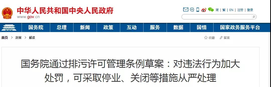 從征求意見至今歷時兩年多時間,《排污許可管理條例(草案)》獲得通過。會議明確根據(jù)污染物產生量、排放量、對環(huán)境影響程度等,對排污單位實行分類管理,規(guī)范排污許可證申請審批程序,要求排污單位建立環(huán)境管理臺賬記錄制度、公開排放信息,強調加強事中事后監(jiān)管,對違法行為加大處罰力度,采取按日連續(xù)處罰和停產整治、停業(yè)、關閉等措施從嚴處理,提高違法成本。會議還研究了其他事項。