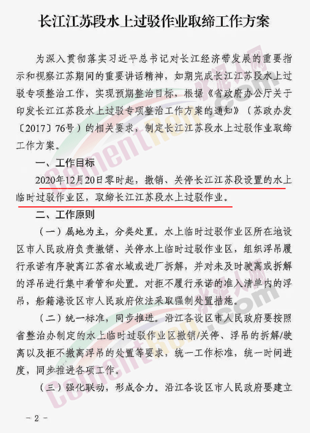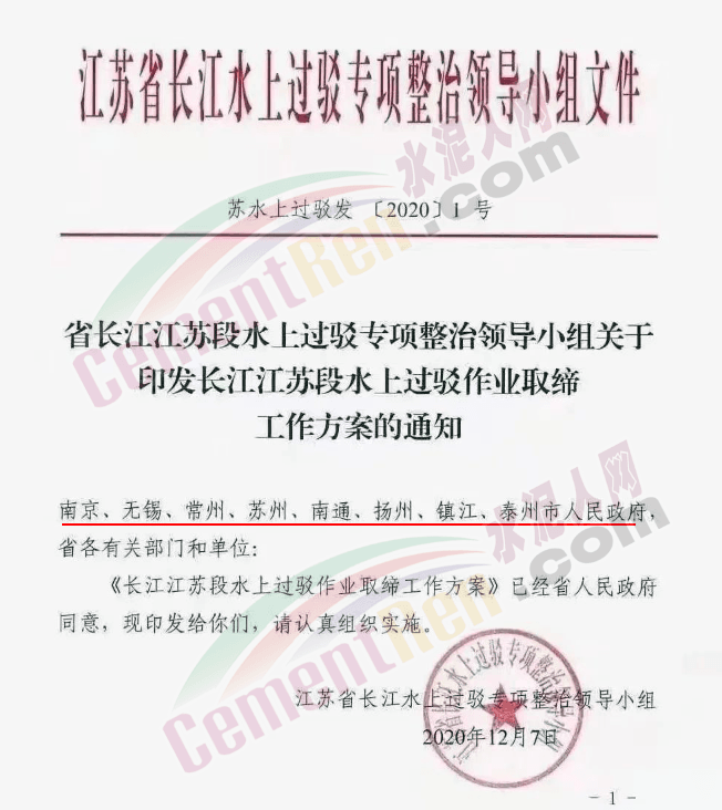 同期,江蘇省長江水上過駁專項整治領(lǐng)導(dǎo)小組印發(fā)《長江江蘇段水上過駁作業(yè)取締工作方案》,明確2020年12月20日零時起,撤銷、關(guān)停長江江蘇段設(shè)置的水上臨時過駁作業(yè)區(qū),取締長江江蘇段水上過駁作業(yè)。