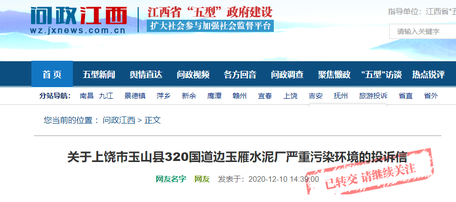 日前,一網(wǎng)友在問(wèn)政江西上提出玉雁水泥廠(chǎng)污染環(huán)境,水泥廠(chǎng)內(nèi)現(xiàn)又增加了一個(gè)泡沫磚廠(chǎng),污染更加嚴(yán)重,并且該水泥廠(chǎng)出現(xiàn)了違法法排污的情況。原文如下:
