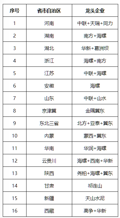 水泥建材行業(yè)相關(guān)人士曾公開表示,水泥行業(yè)追求市場平穩(wěn)、價格穩(wěn)定,既要反對壟斷,更要反對低價傾銷。從各區(qū)域水泥企業(yè)產(chǎn)能分布情況來看,絕大多數(shù)水泥產(chǎn)能聚集區(qū)產(chǎn)能集中度相對較高。各區(qū)域龍頭企業(yè)的產(chǎn)能占比通常達到整個區(qū)域的50%以上。