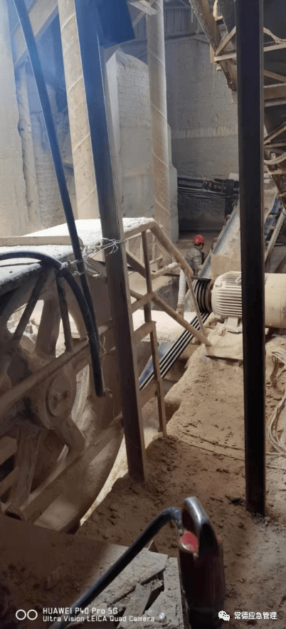 存在的隱患問題:1.主井提升鋼絲繩存在失油現(xiàn)象,繩接卡扣沒有按照一個方向敷設(shè);2.井下存在使用淘汰的農(nóng)用車輛(屬于淘汰設(shè)備);3.井下修理車間衛(wèi)生條件差,油類紙類及其他廢品亂放置,存在火災(zāi)等安全隱患;4.井下主要運輸巷道道路安全擋不齊全;5.礦井進(jìn)風(fēng)流、回風(fēng)流經(jīng)過采空區(qū),井下采空區(qū)沒有密閉;6.井下斜坡道、主要運輸巷行人及車輛運輸安全警示標(biāo)志不全;7.井下掘進(jìn)工作面存在無風(fēng)作業(yè)現(xiàn)象,局扇未開啟,風(fēng)筒未到工作面;8.工作面附近無電話;9.礦井壓風(fēng)自救和供水施救系統(tǒng)主管路銹蝕,系統(tǒng)癱瘓;10.工作面作業(yè)人員高處作業(yè)時未系安全帶;11.廠區(qū)未設(shè)置安全警示標(biāo)志;12.配電房未設(shè)置防鼠網(wǎng)。