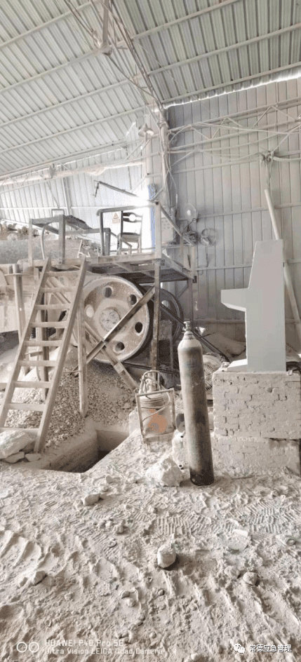存在的隱患問題:1.地面破碎系統(tǒng)設(shè)備設(shè)施無防護(hù)罩;2.井下鏟裝機(jī)械沒有配備滅火器;3.井下爆破作業(yè)采用固定母線放炮;4.井下局扇放置在井巷底板上,沒有安裝局扇托架;5.井下施救供水管使用膠質(zhì)水管;6.井下東1工作面、西1工作面、西2工作面壓風(fēng)自救和供水施救系統(tǒng)未到工作面;7.負(fù)100運輸巷頂板存在松石,沒有及時清頂;8.氧氣瓶與液化氣瓶混放在倉庫中;9.廠區(qū)未設(shè)置安全警示標(biāo)志;10.現(xiàn)場電焊工未見到操作證書。
