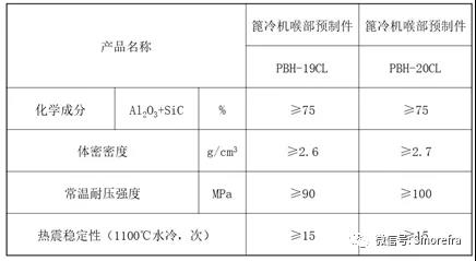 篦冷機喉部預制件技術指標