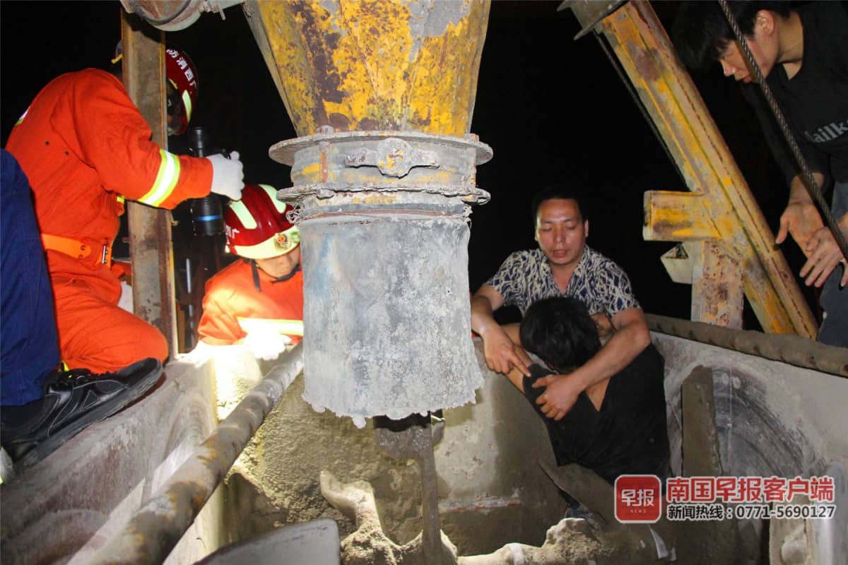 當(dāng)晚7時(shí)多,事發(fā)浦北縣三合鎮(zhèn)三福路。據(jù)了解,男子被夾的位置處于攪拌機(jī)頂部的進(jìn)料口部位,其腰部和背部被攪拌葉輪緊緊卡住,不能動(dòng)彈。傷者的一名工友介紹說,當(dāng)時(shí)他正在攪拌機(jī)的頂部作業(yè),由于操作不慎,身體被卷進(jìn)了攪拌機(jī)。當(dāng)時(shí)他們馬上切斷電源,但人已經(jīng)被卷了進(jìn)去。
