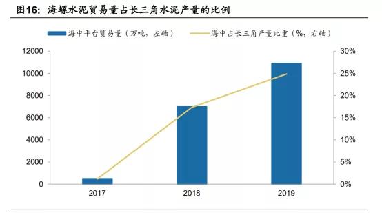 安徽海中貿(mào)易公司的設(shè)立進(jìn)一步強化了行業(yè)自律,拓寬了海螺水泥在長三角市場的護城河,讓公司的大本營更加穩(wěn)固——2017年平臺貿(mào)易量僅占長三角水泥產(chǎn)量的1.5%,這一比例在2018年提升至17.3%,2019年進(jìn)一步提升至24.8%;熟料貿(mào)易公司一是更好控制銷售渠道、占領(lǐng)市場,二是更好防止外來水泥和熟料的無序競爭,穩(wěn)定長三角水泥價格,三是更好保障自己熟料產(chǎn)能充分發(fā)揮,鞏固自己成本優(yōu)勢。
