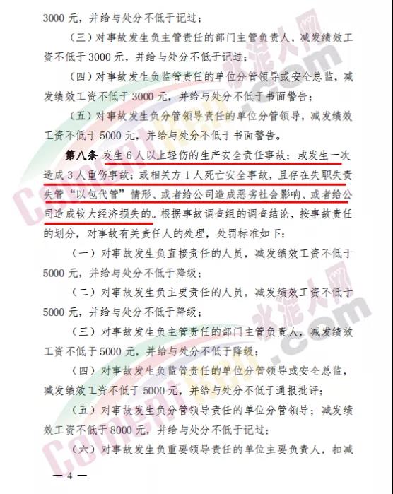 據(jù)水泥人網(wǎng)了解,金隅冀東內(nèi)部一直都有規(guī)定,凡發(fā)生事故的企業(yè)從上至下全部處以金額不等的罰款,年終獎勵也按比例減少,相關責任人甚至會被降職或者辭退。