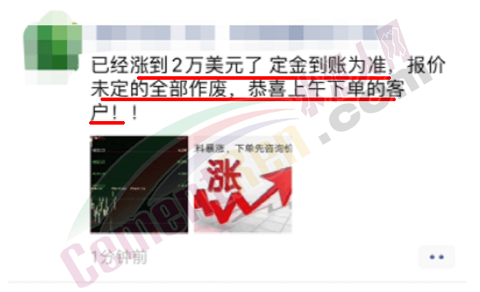 有企業(yè)發(fā)消息稱(chēng),暴漲的行情賣(mài)貨就跟打仗一樣,搶到就是賺到??!這次真的起飛了,漲勢(shì)太迅猛。銷(xiāo)售人員提醒下單的抓點(diǎn)緊呀!開(kāi)工4天漲4天,今天的高價(jià)就是明天的低價(jià),恭喜昨天下單的客戶(hù)!你還在猶豫嗎?再不出手就只能拍大腿了!