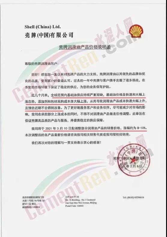 殼牌潤(rùn)滑油發(fā)產(chǎn)品價(jià)格說(shuō)明函稱(chēng),近幾個(gè)月來(lái),全球范圍內(nèi)基礎(chǔ)油供應(yīng)持續(xù)嚴(yán)重短缺,基礎(chǔ)油價(jià)格呈快速和大幅上漲態(tài)勢(shì),添加劑和包材采購(gòu)成本亦大幅上漲,從而導(dǎo)致潤(rùn)滑油產(chǎn)品成本快速大幅上升,且預(yù)估近期不會(huì)得到改善。為了更好地服務(wù)客戶(hù)和業(yè)務(wù)伙伴,盡可能減少對(duì)市場(chǎng)的影響,公司在承擔(dān)部分上漲成本的同時(shí),不得不對(duì)潤(rùn)滑油產(chǎn)品做出價(jià)格調(diào)整。此舉旨在保證殼牌高品質(zhì)的產(chǎn)品與服務(wù),并提供穩(wěn)定的供應(yīng)保障,公司將于2021年3月10日起調(diào)整部分潤(rùn)滑油產(chǎn)品的銷(xiāo)售價(jià)格,漲幅約為8-10%。