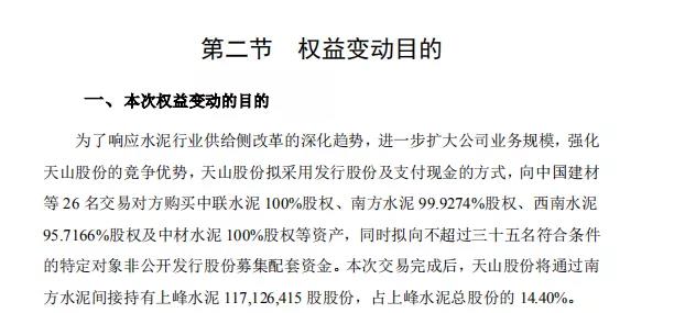 同日,浙江尖峰集團股份有限公司(以下簡稱“尖峰集團”)發(fā)布公告稱,擬參與新疆天山水泥股份有限公司(以下簡稱“天山股份”)的重大資產(chǎn)重組。尖峰集團現(xiàn)持有南方水泥有限公司(以下簡稱“南方水泥”)0.95336%股權(quán)(對應(yīng)注冊資本中的出資額為10,500萬元),該股權(quán)經(jīng)評估定價為46,528.909270萬元,天山股份擬以發(fā)行股份購買資產(chǎn)的方式收購該股權(quán)。若交易能順利實施且天山股份的發(fā)行價格不做調(diào)整,則交易完成后尖峰集團將持有天山股份發(fā)行的股份34,774,969股,并不再持有南方水泥的股權(quán)。
