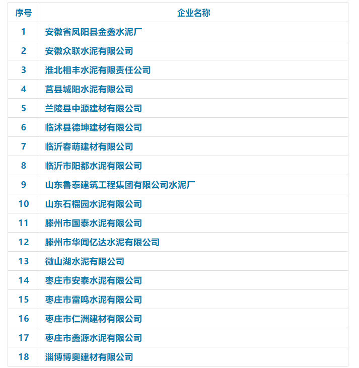 此次水泥質(zhì)量萬里行抽檢中,不合格水泥生產(chǎn)企業(yè)包括18家企業(yè)分別為: