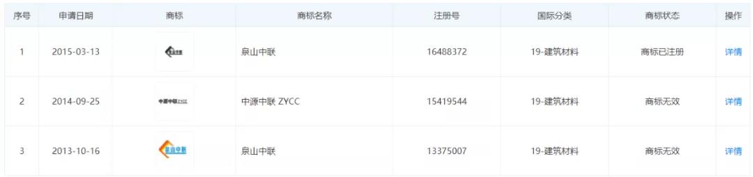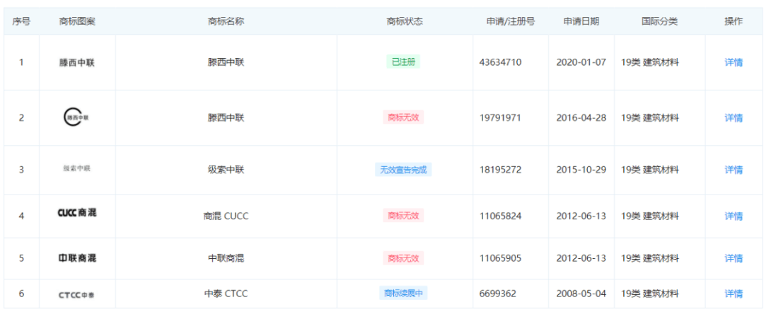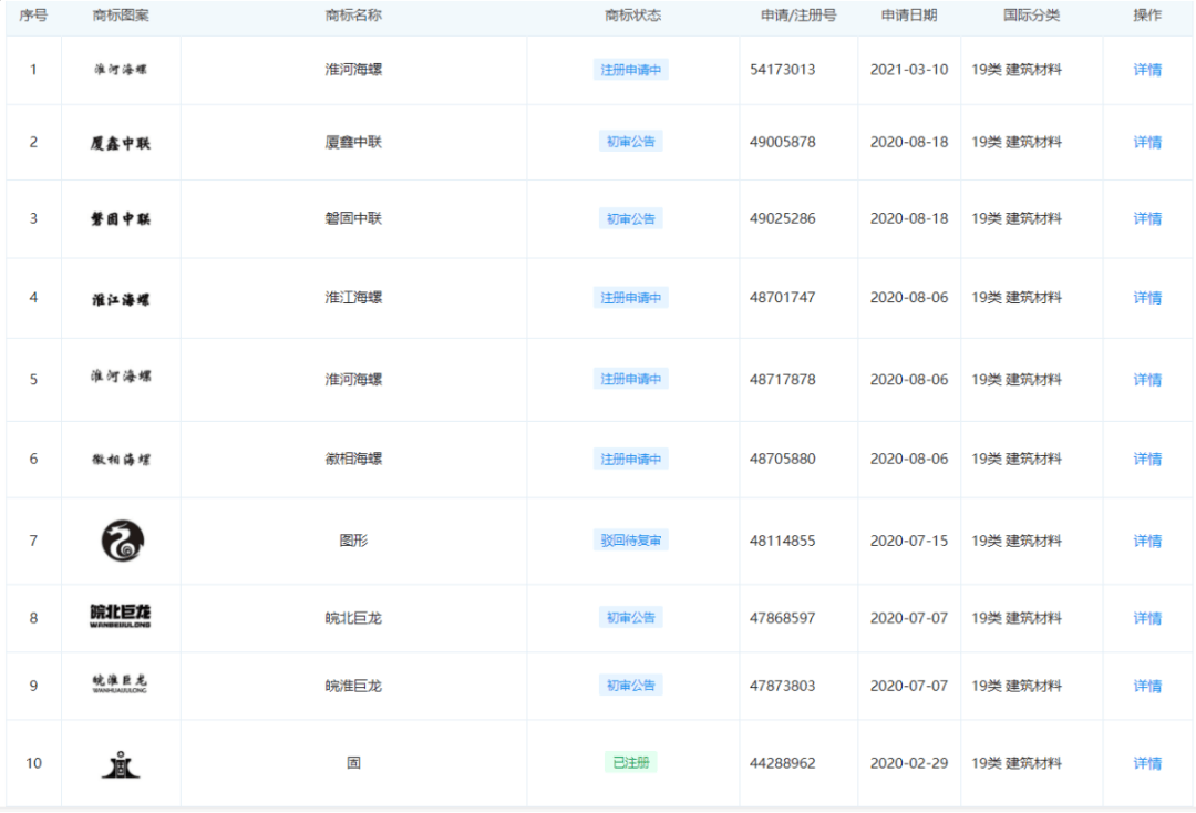 從不合格水泥品牌列表可見有9家企業(yè)為“高仿品牌”水泥。8家企業(yè)商標均帶有“中聯(lián)”字樣,其中5家商標狀態(tài)為已注冊3家未注冊。雖注冊為“中聯(lián)”卻非中國聯(lián)合水泥集團有限公司下屬企業(yè)。另一家企業(yè)商標中帶有“海螺”字樣,商標為申請注冊過程中,申請日期為上周三(2021年3月10日)也非安徽海螺水泥股份有限公司下屬企業(yè)。