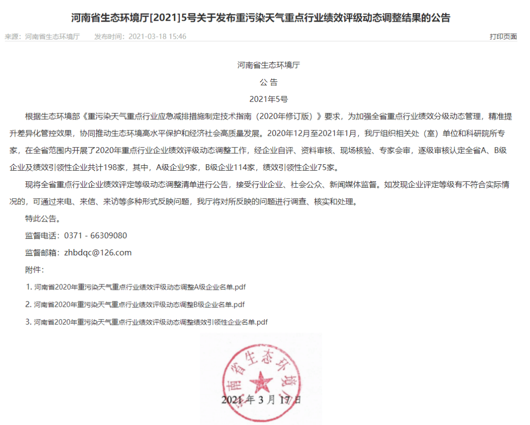 日前,河南省生態(tài)環(huán)境廳發(fā)布重污染天氣重點(diǎn)行業(yè)績(jī)效評(píng)級(jí)動(dòng)態(tài)調(diào)整結(jié)果的公告稱(chēng),2020年12月至2021年1月,河南省生礦環(huán)境廳組織相關(guān)處(室)單位和科研院所專(zhuān)家,在全省范圍內(nèi)開(kāi)展了2020年重點(diǎn)行業(yè)企業(yè)績(jī)效評(píng)級(jí)動(dòng)態(tài)調(diào)整工作,經(jīng)企業(yè)自評(píng)、資料審核、現(xiàn)場(chǎng)核驗(yàn)、專(zhuān)家會(huì)審,逐級(jí)審核認(rèn)定全省A、B級(jí)企業(yè)及績(jī)效引領(lǐng)性企業(yè)共計(jì)198家,其中,A級(jí)企業(yè)9家,B級(jí)企業(yè)114家,績(jī)效引領(lǐng)性企業(yè)75家。