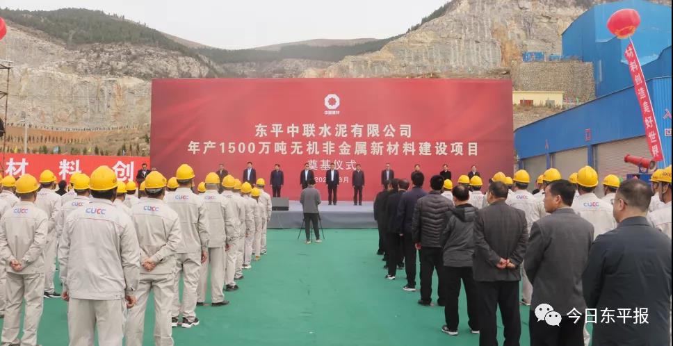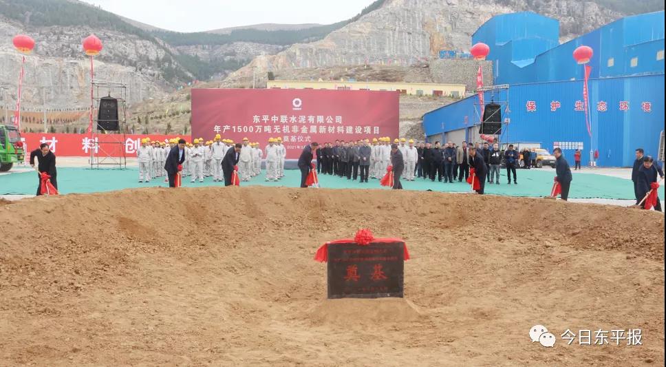 3月19日,東平中聯(lián)水泥有限公司年產(chǎn)1500萬噸無機非金屬新材料建設項目開工奠基。中國聯(lián)合水泥集團有限公司總經(jīng)理孫建成,市委副書記、縣委書記曲鋒,縣政協(xié)主席劉祥濤,縣人大常委會主任劉思宏,縣人大常委會黨組書記陳鋒,縣委常委、辦公室主任李廣義,縣委常委、組織部長安郁杰,縣委常委、常務副縣長李生廣等出席項目開工奠基儀式。