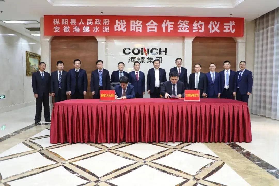 在誠摯友好的氣氛中,雙方先后簽署了銅陵海螺年產(chǎn)1300萬噸溶劑灰?guī)r項(xiàng)目投資協(xié)議、樅陽縣人民政府與安徽海螺水泥戰(zhàn)略合作協(xié)議。